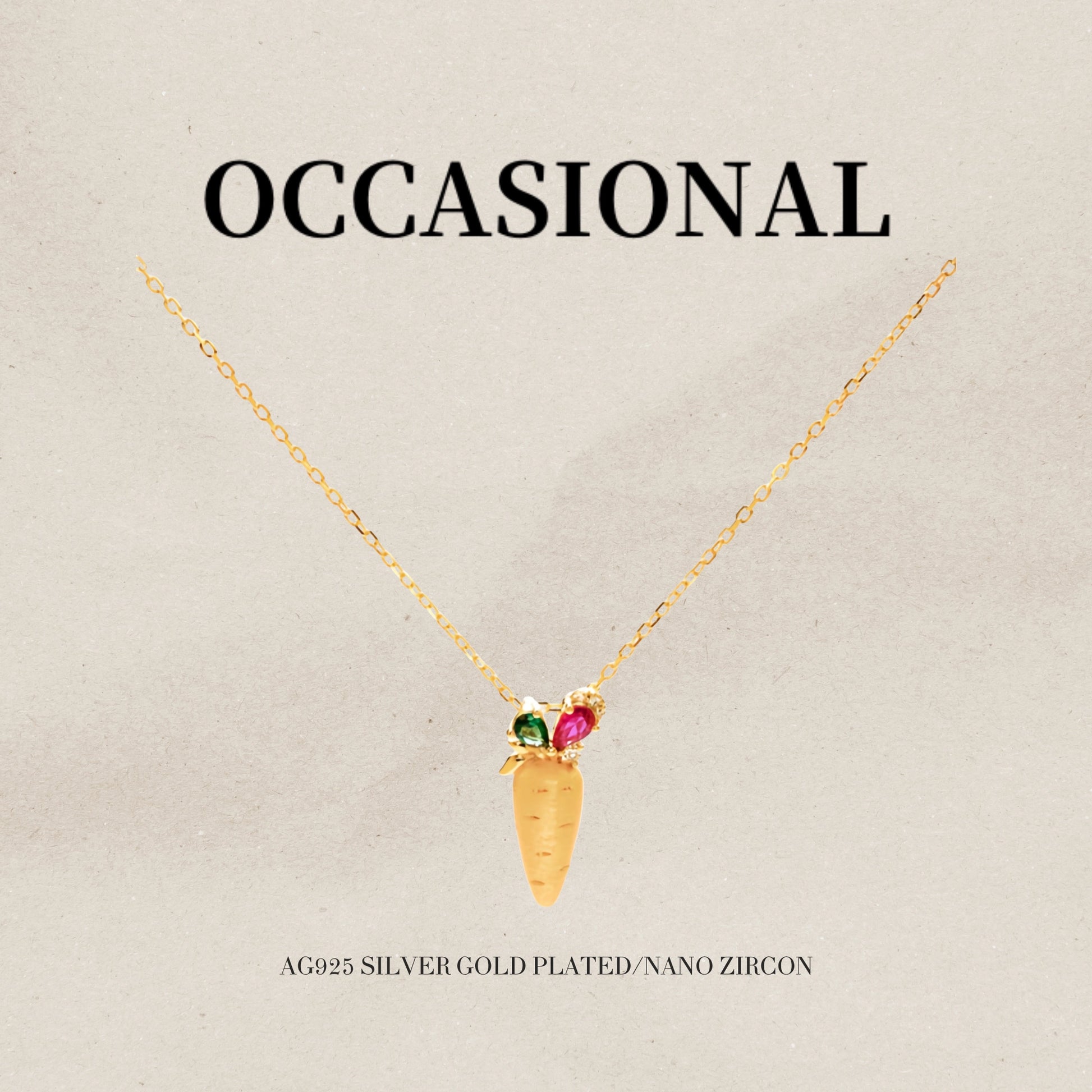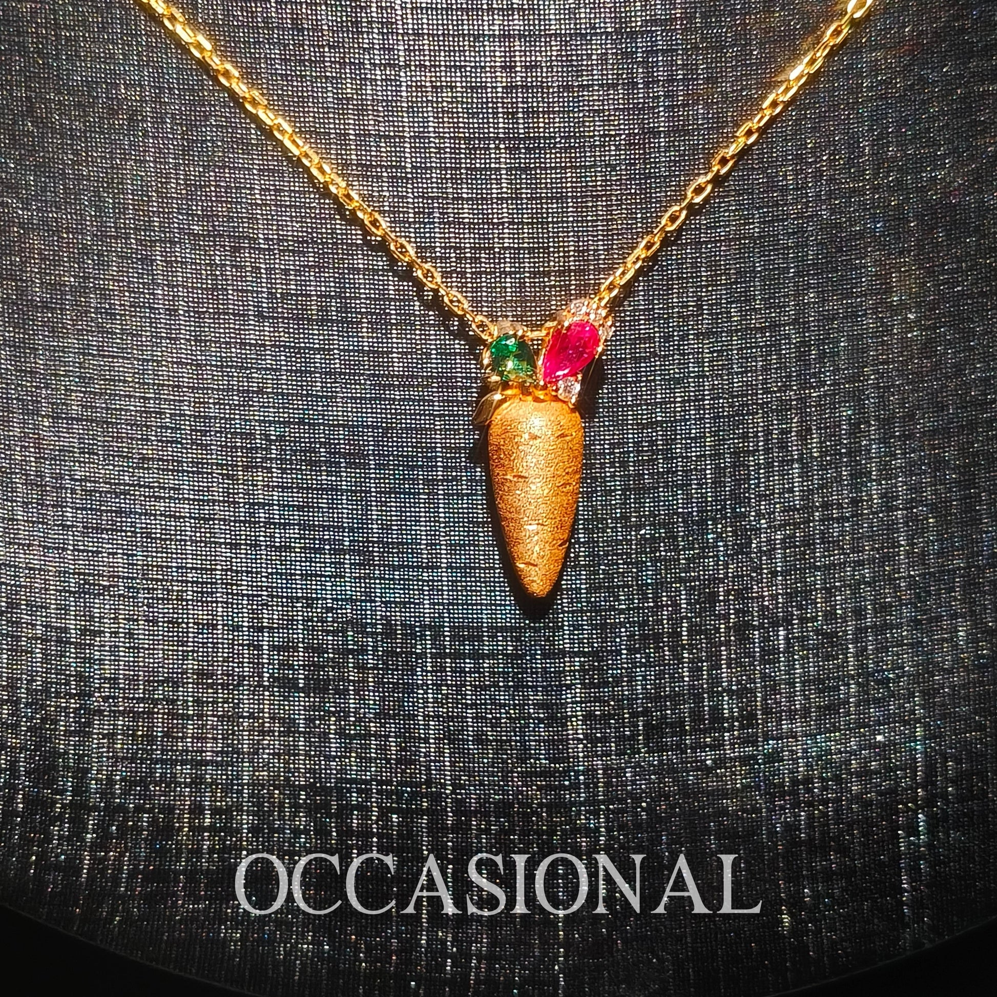 This everyday necklace is inspired by the carrot in a fairy tale picture book. This necklace has a three-dimensional carrot pendant. Whether worn alone or stacked with a clavicle chain, it can show your beautiful neck and unique taste.