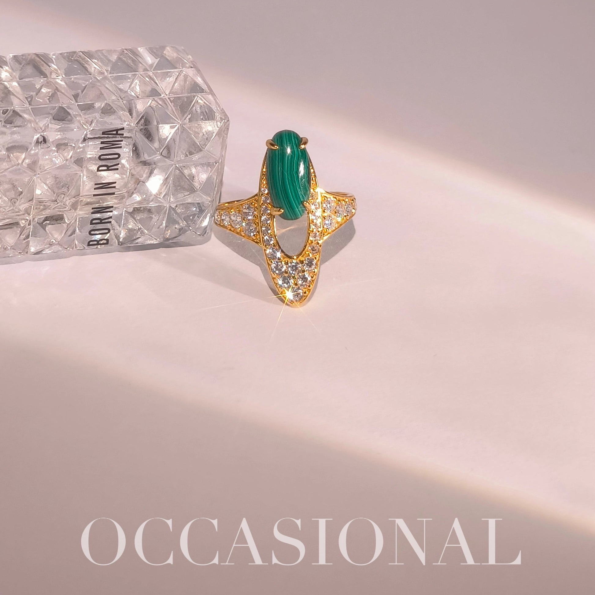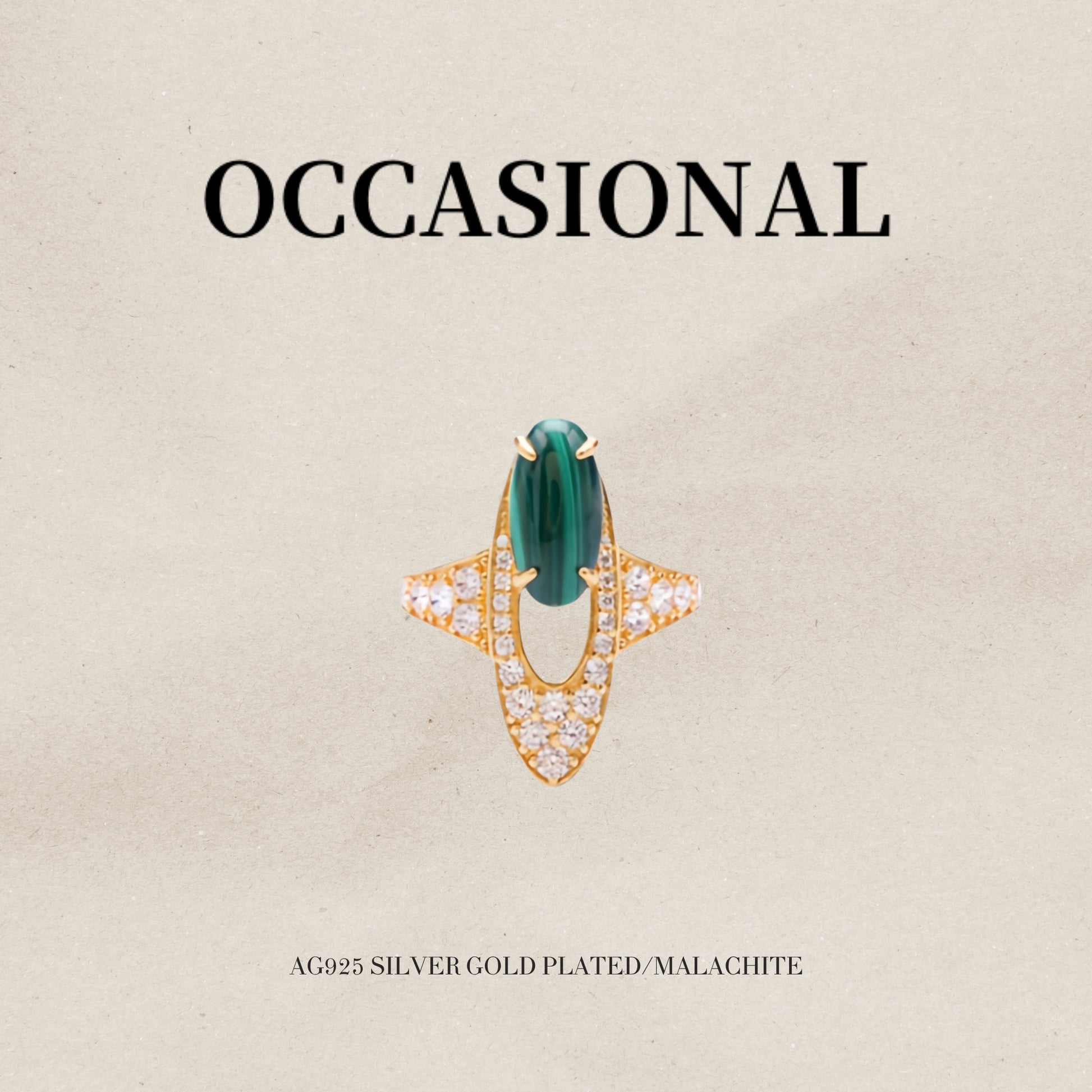 This elegant and noble work is inspired by the bamboo forest in the mountains. The main stone is selected from natural malachite, each of which is naturally carved and unique.The overall design of the ring face is a slender oval, which plays a role in modifying the finger shape. Wearing it can make your hands more slender and elegant.